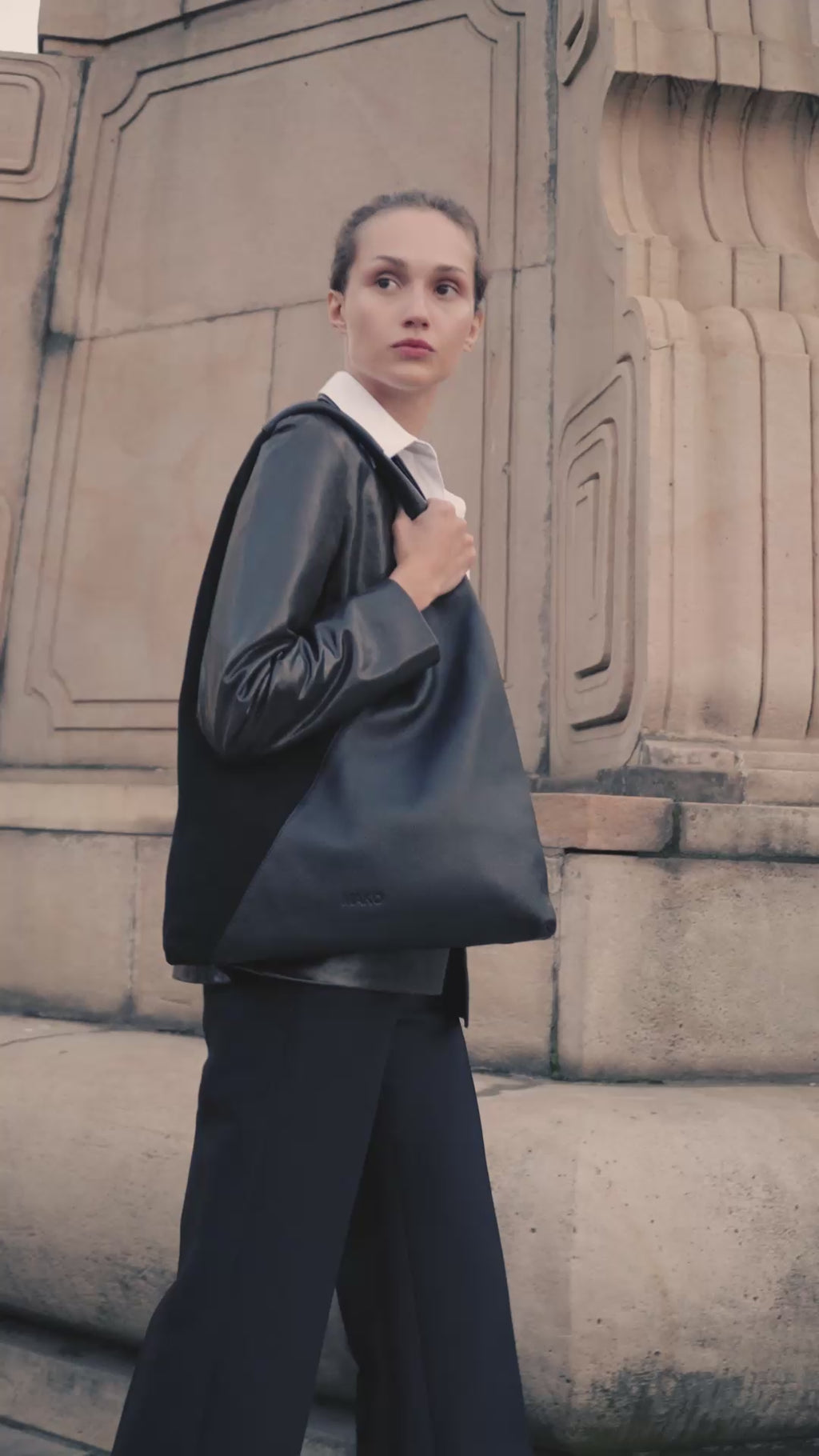 Prosta i wygodna torba typu Shopper, o trójkątnej formie z charakterystycznym wcięciem. Klasyczna, minimalistyczna i starannie dopracowana. Konstrukcja łączy przyjemny w dotyku zamsz z gładką skórą licową.