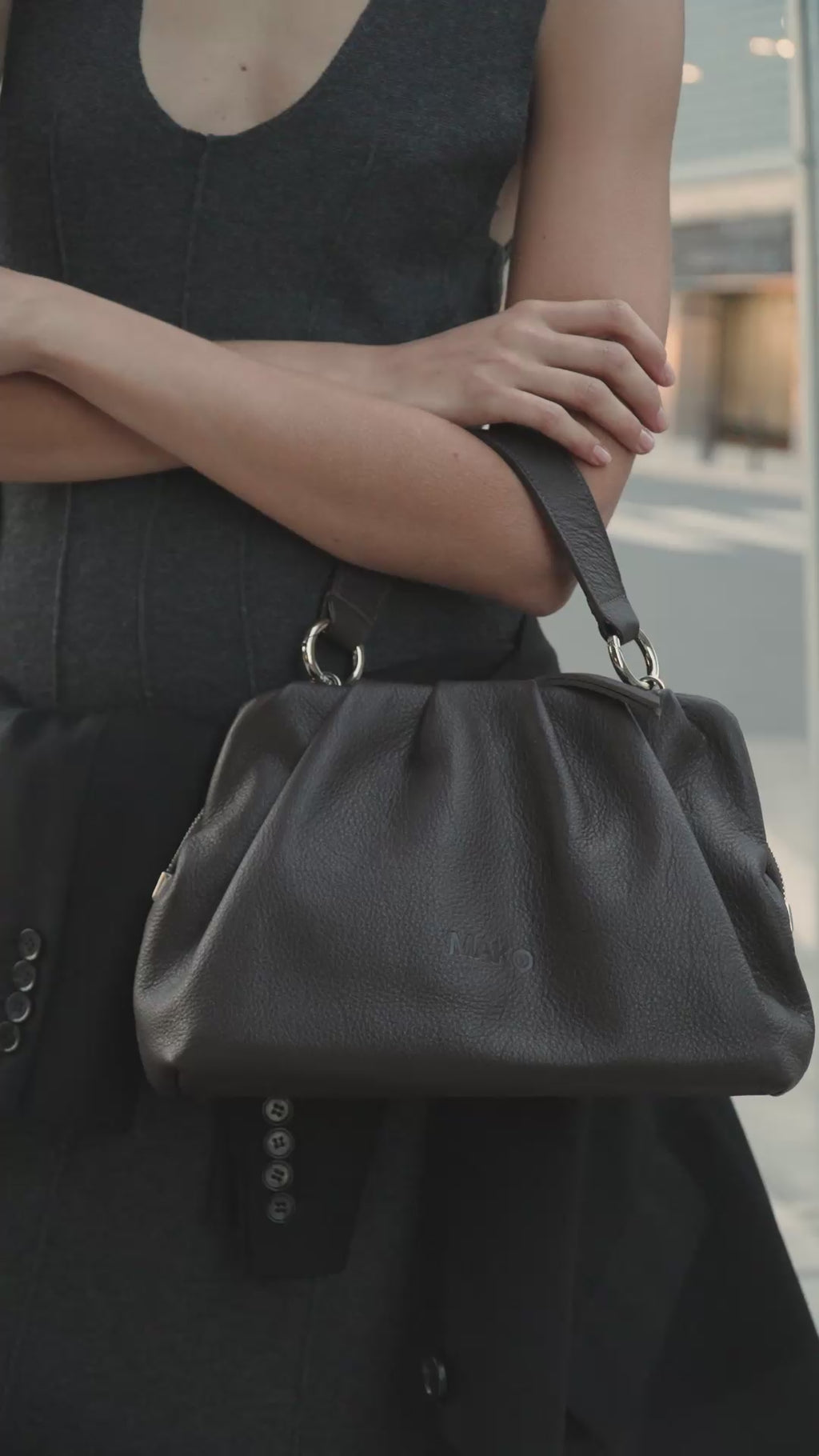 Torebka o wyjątkowym charakterze i kultowym kształcie. Lekka, miękka, delikatna. W zestawie z trzema wymiennymi paskami różnej długości: krótka rączka, crossbody oraz na ramię. Zapinana na suwak.